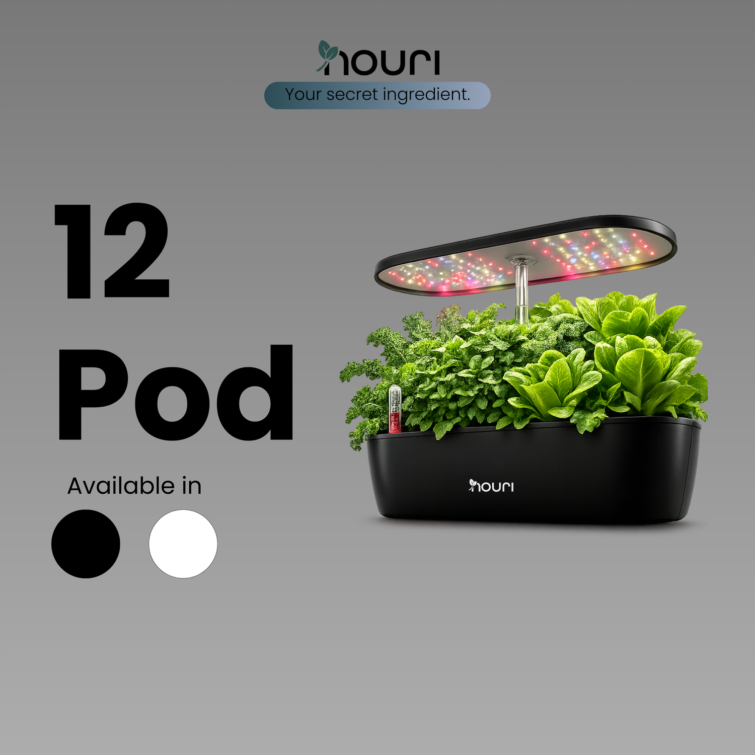 The Nouri 12-Pod Smart Indoor Herb Garden is designed for serious home cooks and passionate plant lovers who want maximum variety in one sleek system. Grow up to twelve herbs, greens, or edible flowers at once โ perfect for everyday meals, entertaining, or creative cooking. The adjustable full-spectrum LED panel ensures optimal light at every growth stage, while the hydroponic system promotes steady, soil-free development. For models with smart app connectivity, you can automate schedules and keep plants thriving even during busy weeks. Elegant, efficient, and easy to use, this is indoor gardening made beautifully simple.